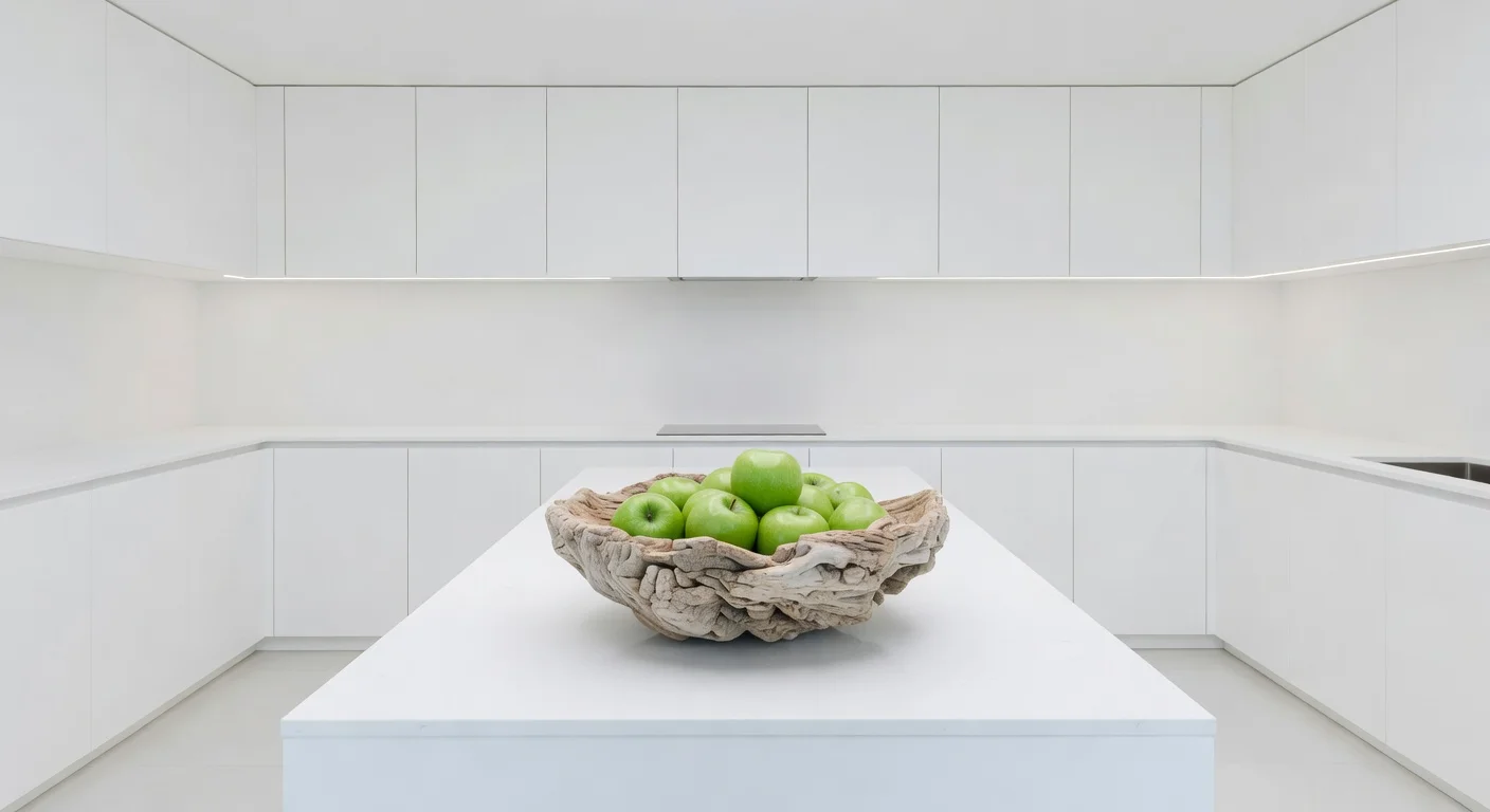 - Texture: A high-gloss metal item placed in a heavily upholstered, matte room.